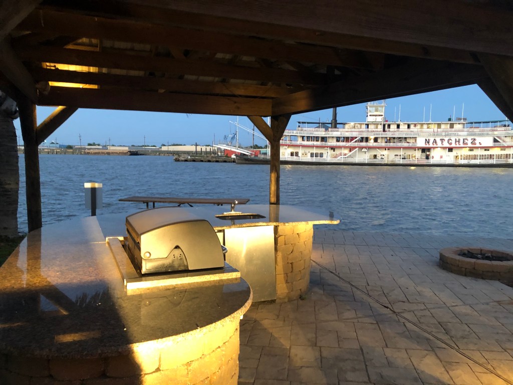 Tom and Mo’s Excellent Adventure- Coviday whatever. Finally made it to Nawlins. Pontchatrain Landing to be exact. The site is awesome. Outdoor grill. Tiki gazebo and hot tub! We didn’t find out until this morning we’re also parked across from a noise factory. I’m guessing the early shift starts at 5am. Who the fuck knows what they’re making besides racket. Had hewn wheelbarrows, trash can lids or really shitty cymbals came to the top of the list. Who knew? Well they sure as hell did. Curse the Noise Assemblers Union!